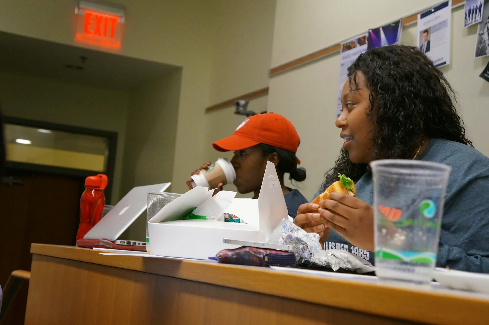 Members were broken up into teams and asked to act out different scenarios that could possibly occur while on the job. Some scenarios included managing your workload, going out to dinner with the boss, dealing with chatty co-workers and arriving late.